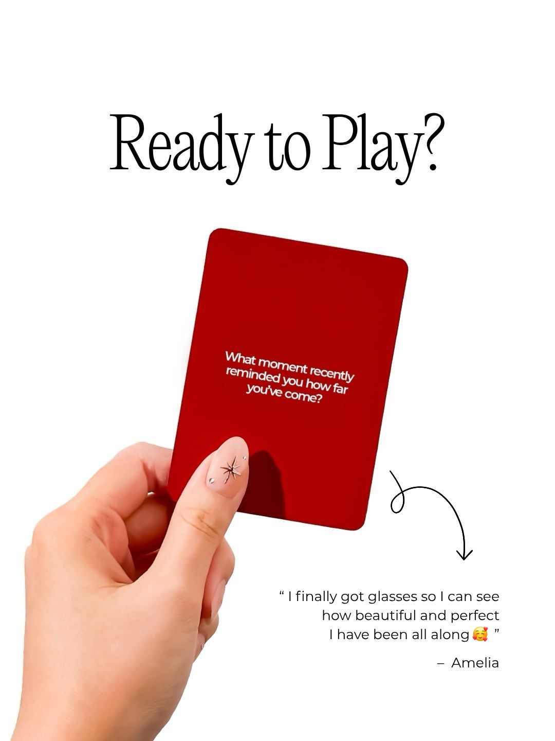 This card deck helps you open up, connect, and discover new perspectives — about yourself and those around you. Play it anywhere. With anyone.Your bestie. Your partner. Your neighbour. Your situationship.Even your boss. Perfect for dinner nights, long drives, team hangouts, or late-night talks that change how you see the world — and yourself.